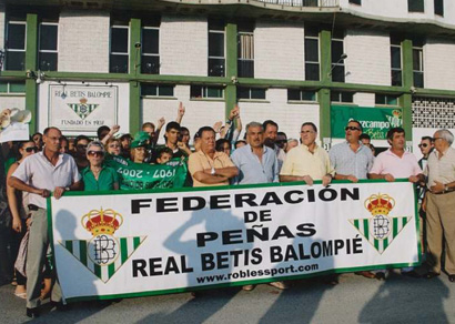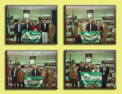 Por parte de la Federación de Peñas acudieron Antonio Murillo(tesorero), Rafael Fernández(vocal) y José Luis Ojeda(secretario). En la foto, el tesorero Antonio Murillo hace entrega de un plato conmemorativo a Juan Manuel Estévez (presidente de la peña) y a su secretario Antonio Cruz. Por su parte, el Real Betis hizo entrega de una camiseta oficial del equipo; recibiendo por parte del presidente de la Peña una placa conmemorativa del acto.